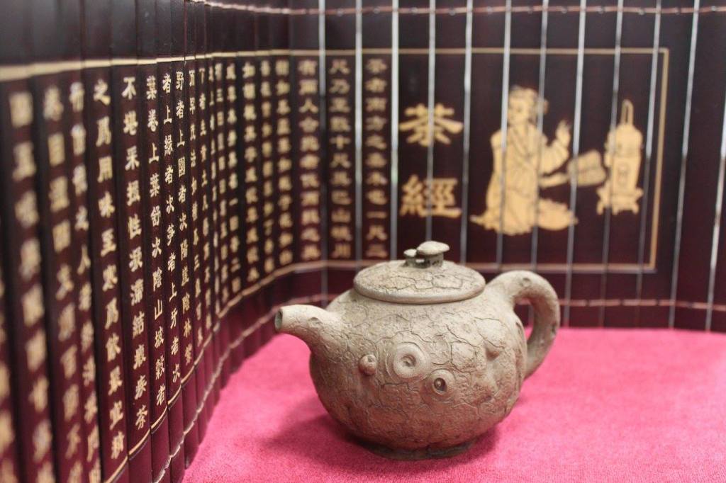 Tea: An Yixing teapot rests before a scroll depicting text from The Classic of Tea
