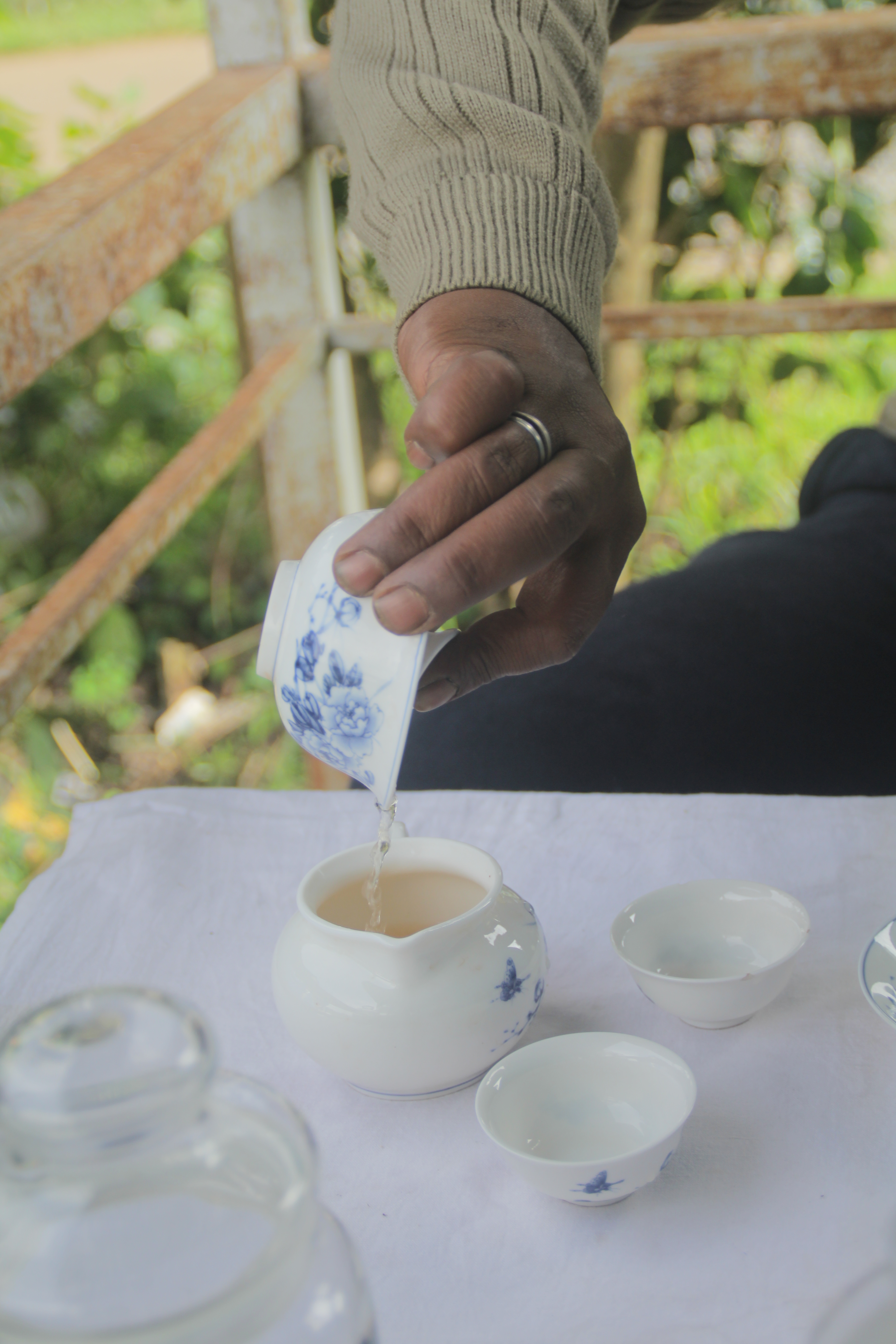 Nilgiris: Farmer Prabhu Nanjan pours hand-crafted tea from the gaiwan into a pitcher.