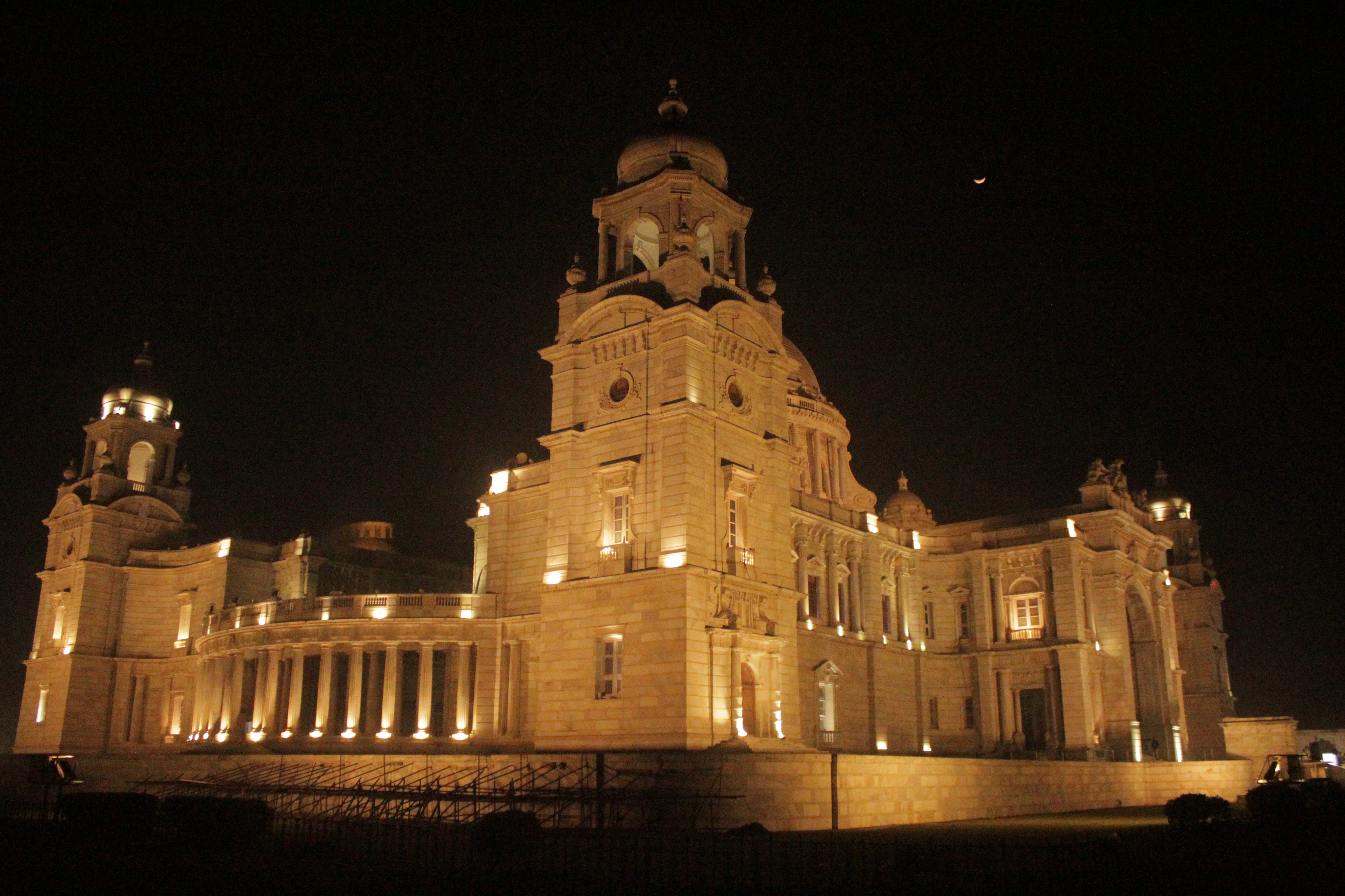 Kolkata: The Victoria Memorial is accented by a crescent moon