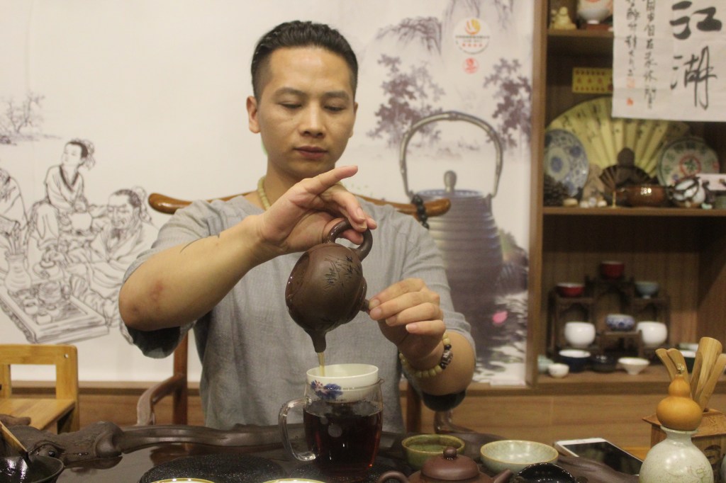 Tea: Pengyun brews tea from an Yixing teapot in his tea shop in Suzhou