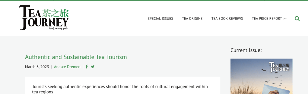 - “Authentic and Sustainable Tea Tourism” Tea Journey, September 2021